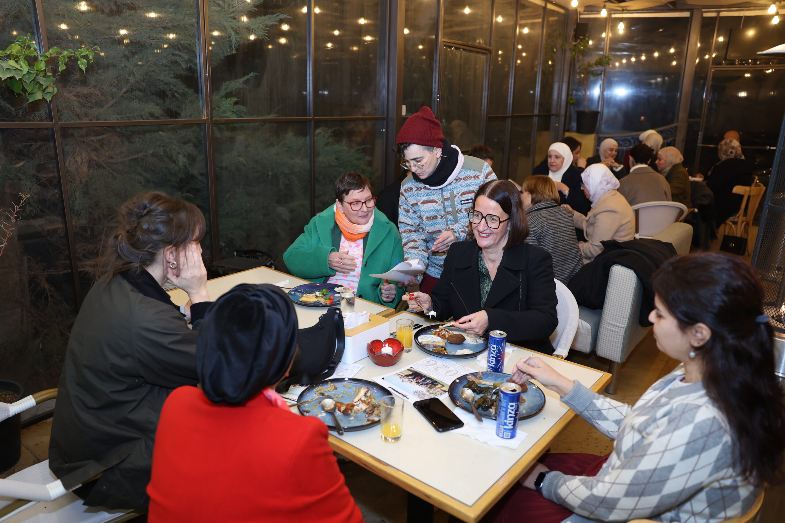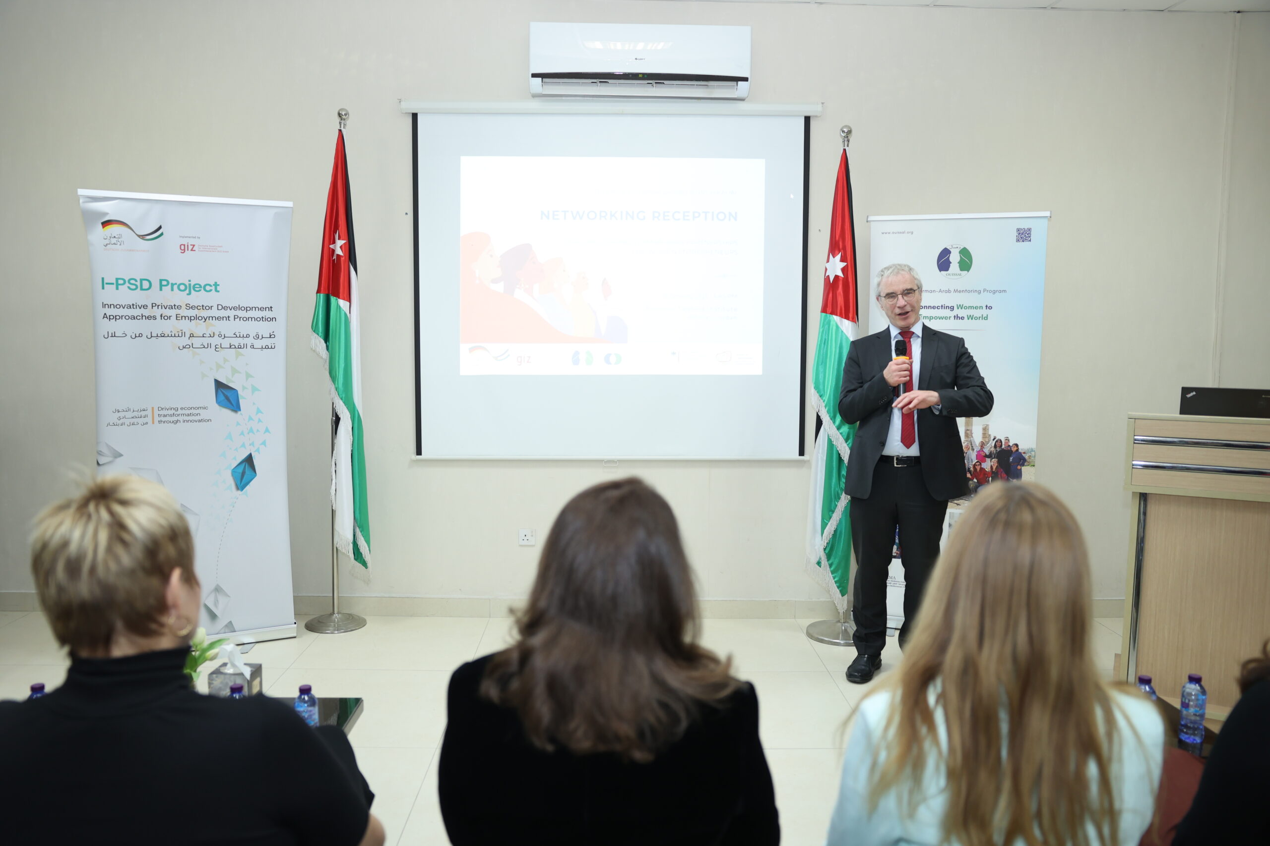 Im Mittelpunkt des Abends stand der persönliche Austausch. Vertreterinnen und Vertreter aus dem öffentlichen und privaten Sektor, der Zivilgesellschaft, aus dem Kreis der I-PSD-Stakeholder sowie OUISSAL-Teilnehmerinnen aus Jordanien, Libanon, Algerien und Deutschland kamen zusammen, um Erfahrungen und Ideen auszutauschen. In informeller Atmosphäre bot der Empfang zudem Raum für Gespräche bei einem traditionellen jordanischen Abendessen.
